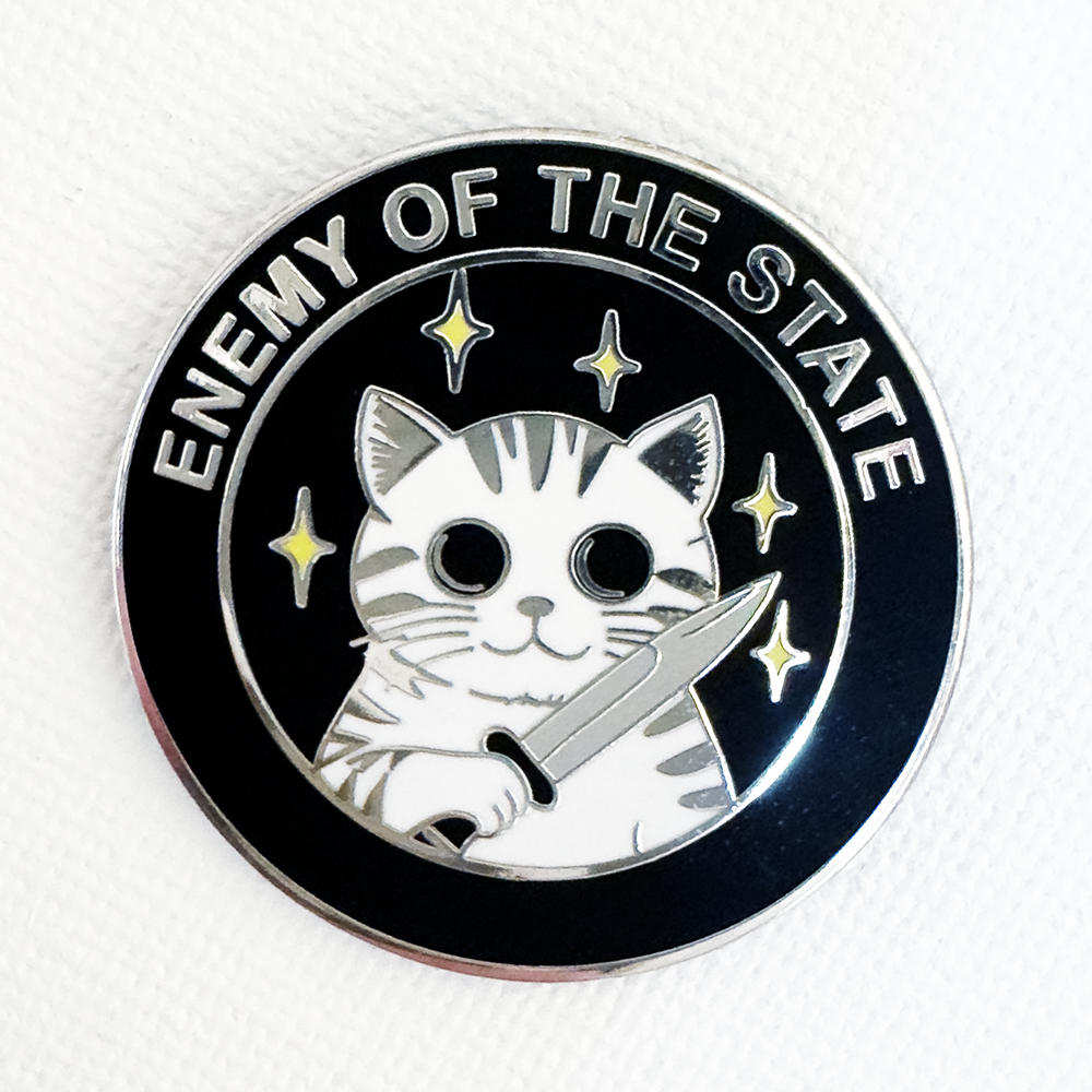 In the past month I have received separate complaints that I have been posting too much about politics and cats. So today's Low Quality Ad is for this "Enemy of the State" cat pin. Keep the complaints coming guys.
