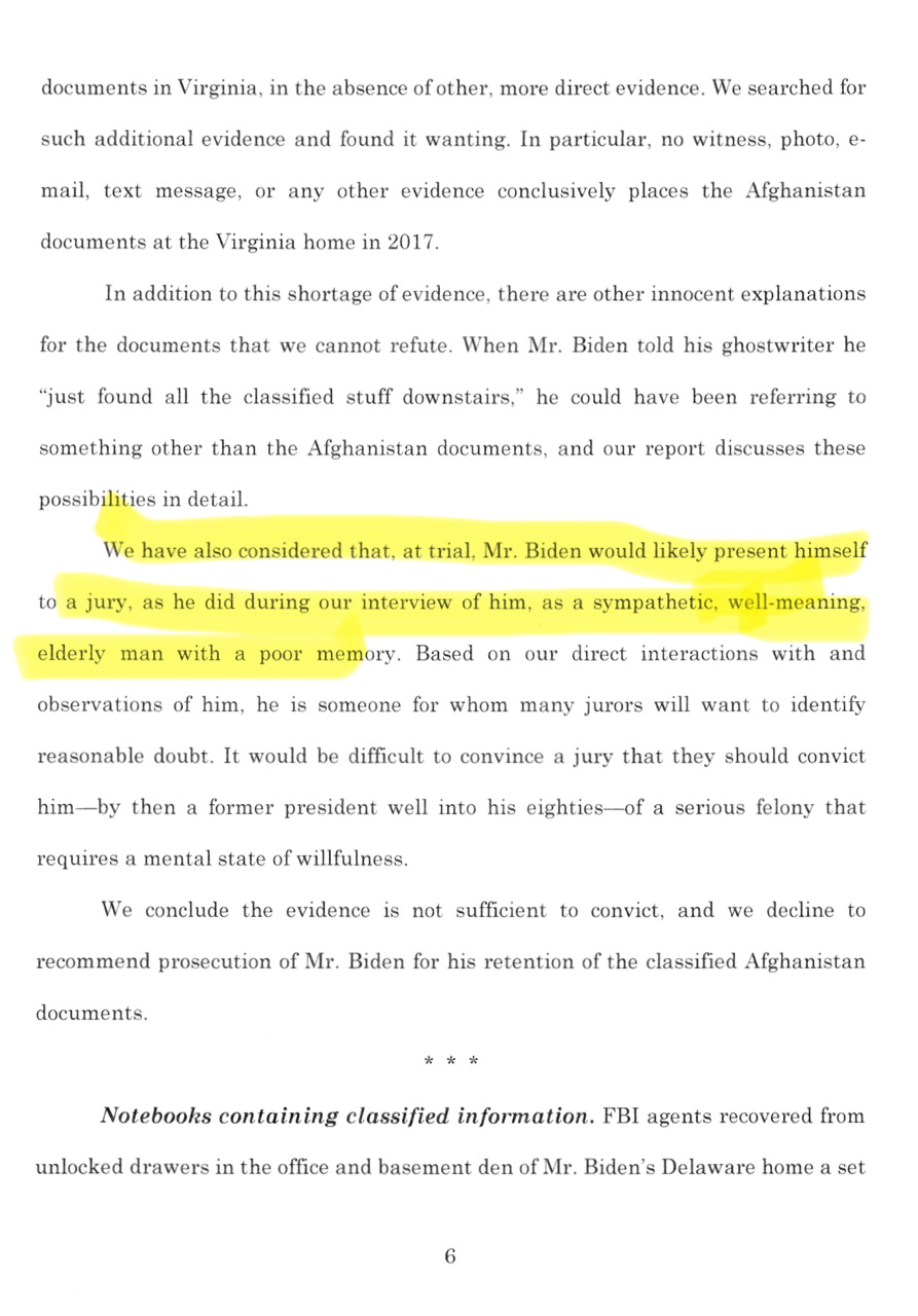 However (it says on p. 6), if there -were- a crime, Biden could present himself as a “sympathetic, well-meaning elderly man with a poor memory.”