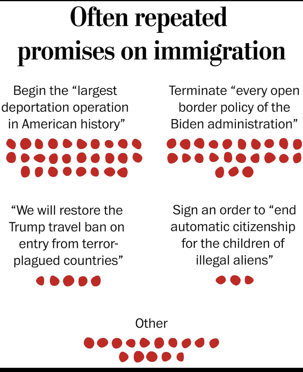 #Trump centered his 2016 campaign on anti-#immigrant rhetoric, & he is doing so again this year. He has made more unique day-one promises related to this topic than any other, acc/to The Post’s analysis.