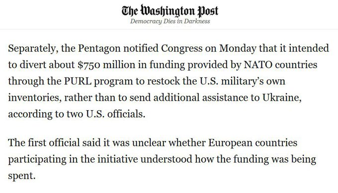 "European countries🚨paid billions for US equipment to be delivered to Ukraine. That money🚨is now being STOLEN to be used against Iran. I remember Sikorski in particular was very proud of this plan."