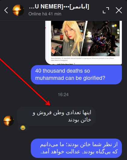 Segundo ele, essa garota era uma traidora... Iran já exterminou 40 mil pessoas em 2 semanas....