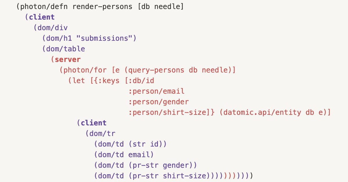 You don't need a web framework, you need a web language. In this blog post we explain hyperfiddle/photon – a reactive #Clojure/Script dialect, specialized for server-streamed user interfaces.