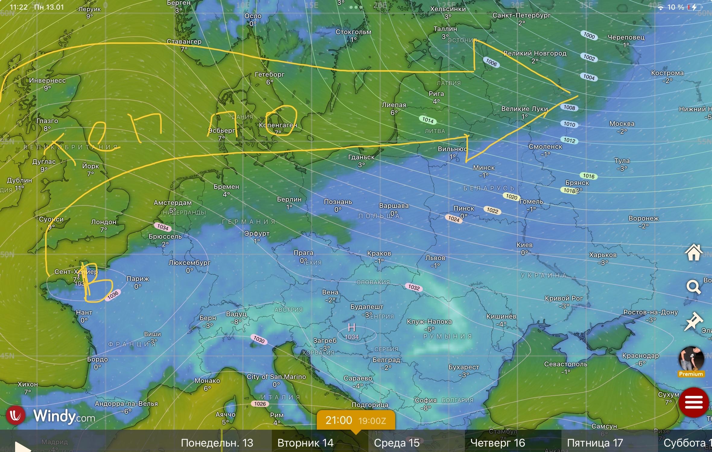 Интересная циркуляция на ближайшие 3-5 дней устанавливается в Европе.