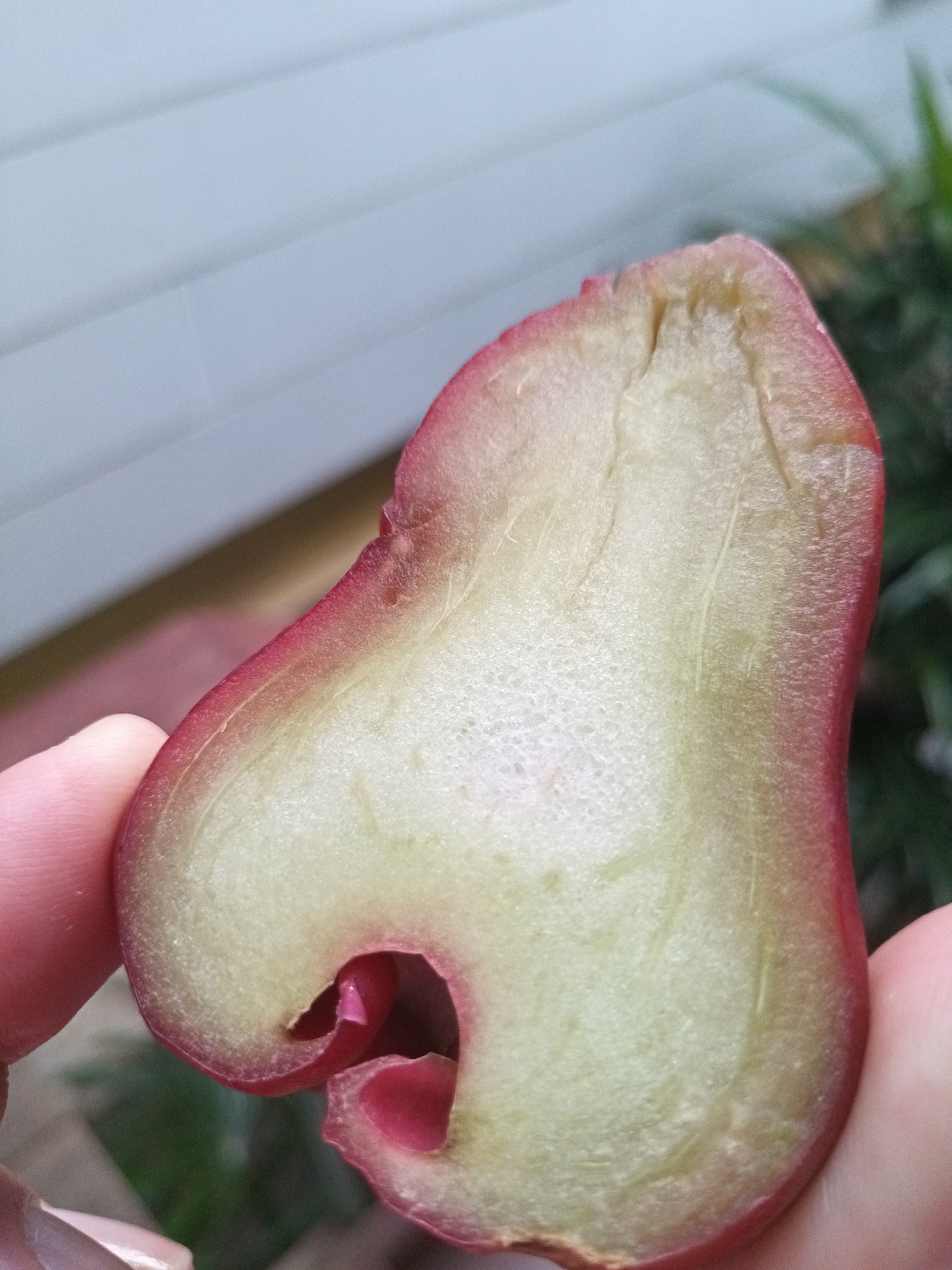 Захотелось новых вкусовых ощущений, купила незнакомый фрукт. Или овощ. По консистенции похоже на китайскую грушу, на вкус на неё же, только ещё более пресная и чуть кислее. На буквы из чека "ชมพูทับทิมจันทร์" гуглопереводчик выдал непонятное "Pink Ruby Moon". Кто знает, что это и можно ли из него что-нибудь вкусное приготовить?