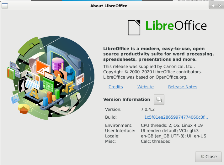 libreoffice 7.0.4.2 canonical✓ - LibreOffice is a powerful office suite including word processing and creation of spreadsheets, slideshows and databases