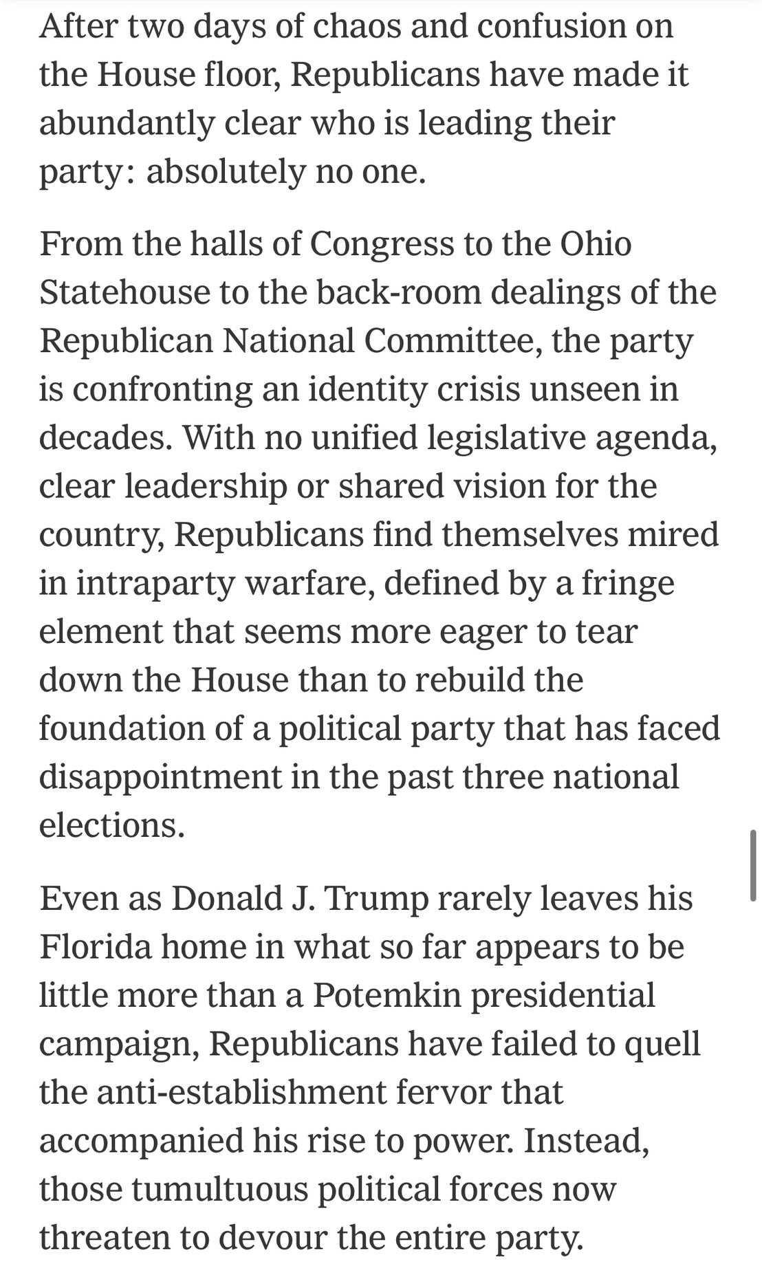 @glennf I'm reminded of early 2017 when the GOP found itself in control of the House, the Senate and the White House and couldn't manage to get anything done for months.