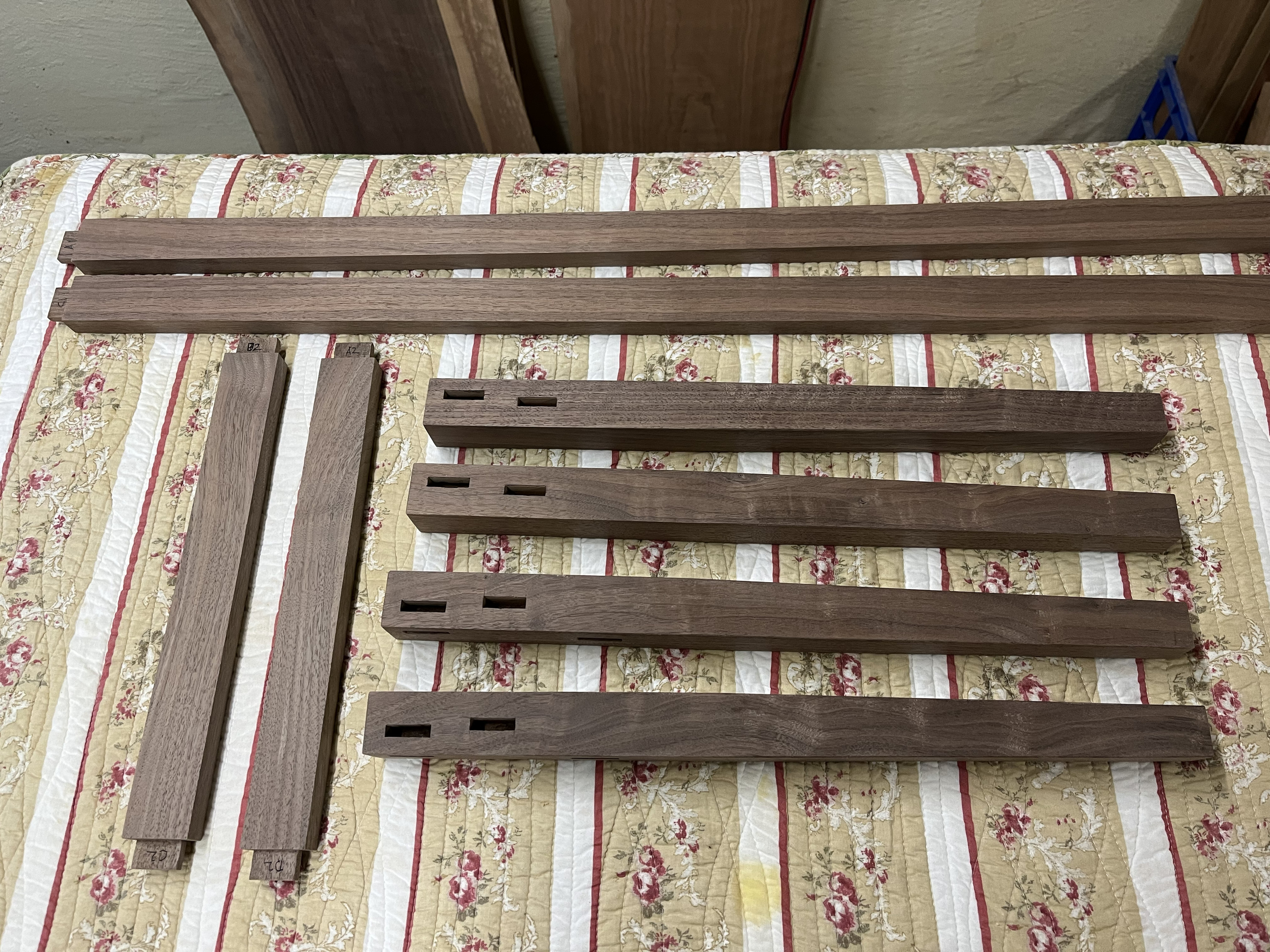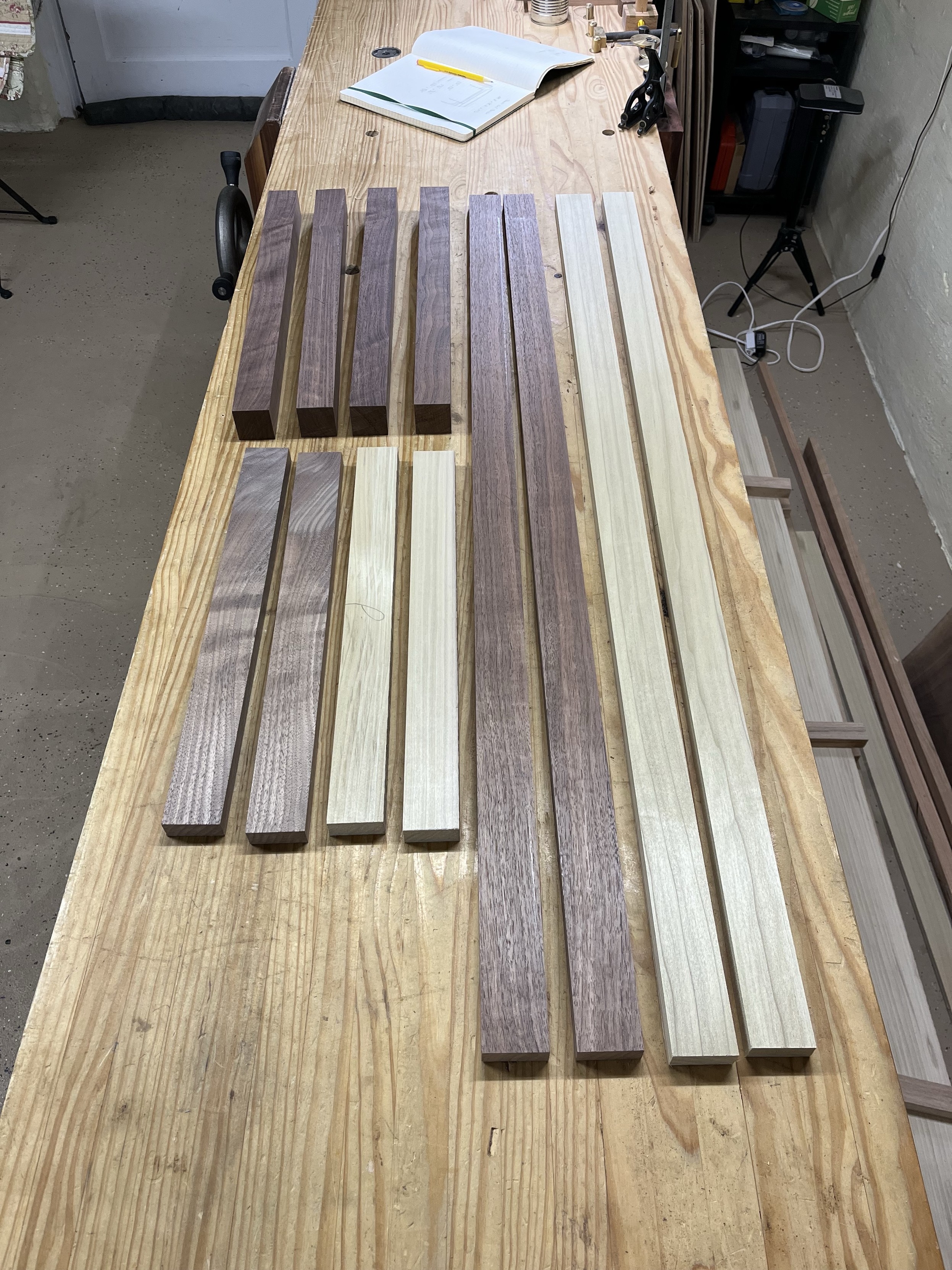 This weekend I did some shaping, sanding, and applied a finish to the walnut pieces ahead of glue-up.