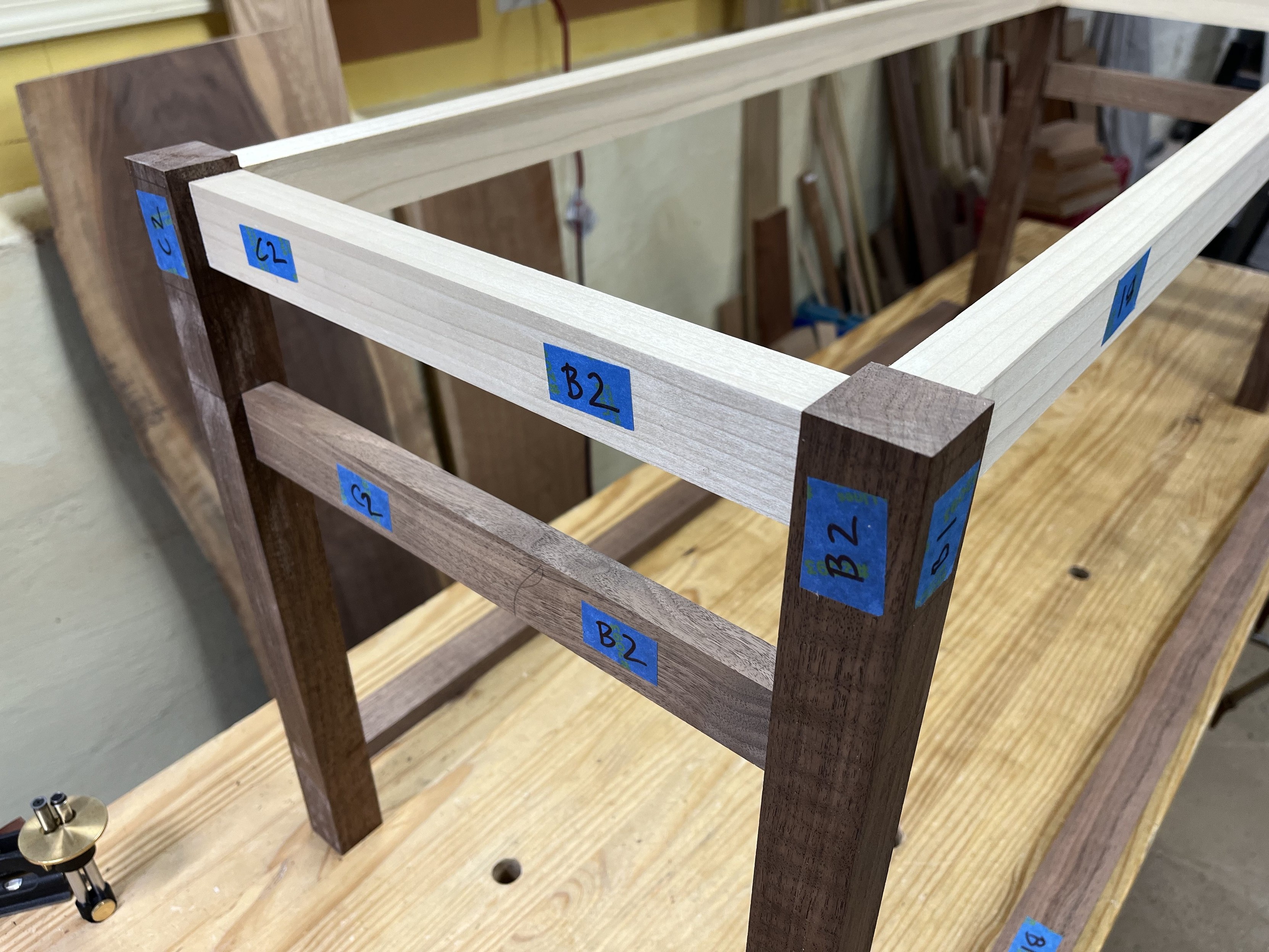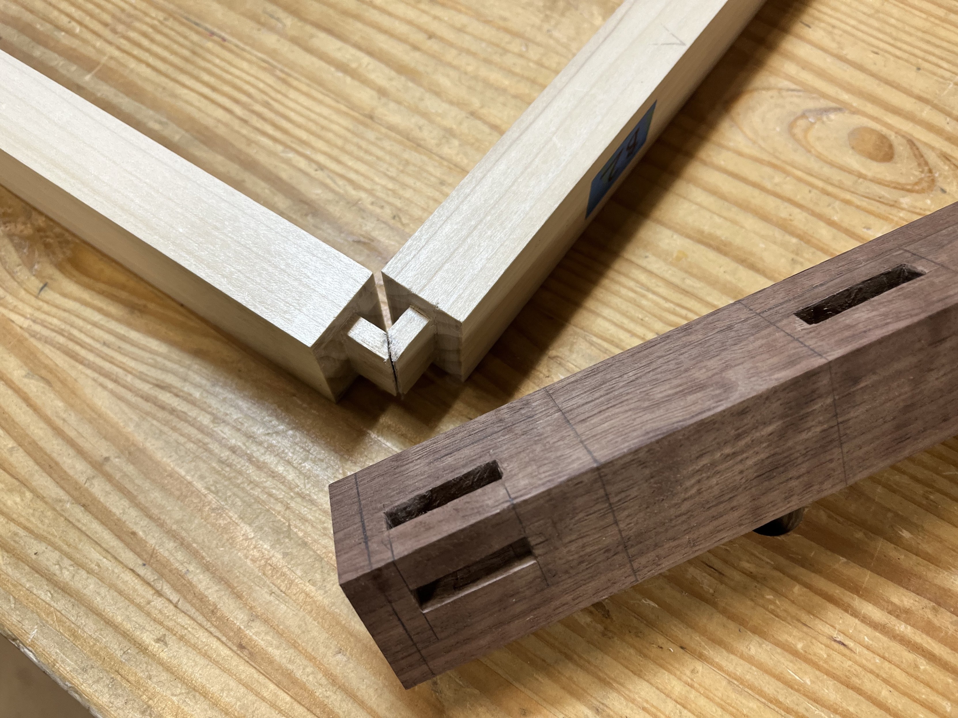 For funsies, I timed myself making one of the joints. Starting from marking it out, cutting the mortise, sizing the tenon, and fine tuning it took....