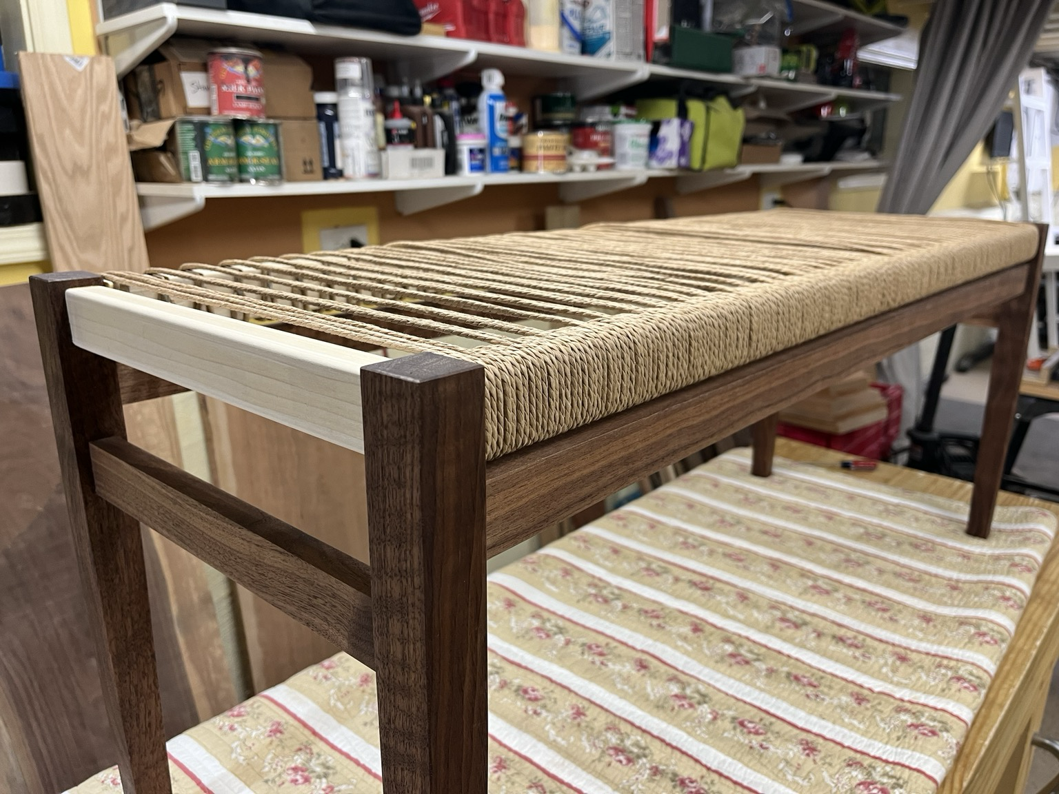 I'm calling this one done. Total time was around 35 hours; dimensioning, joinery, shaping, finishing, and weaving.