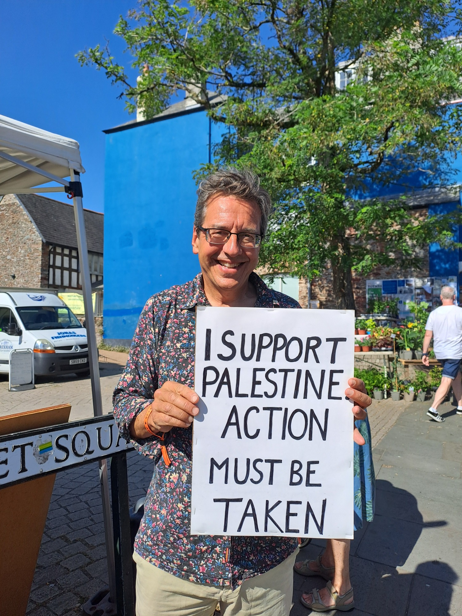 At our demonstration today, I'm holding a placard stating "I support Palestine. Action must be taken." My aim is to highlight the absurdity of the government dictating what can and cannot be said by peace-seeking people