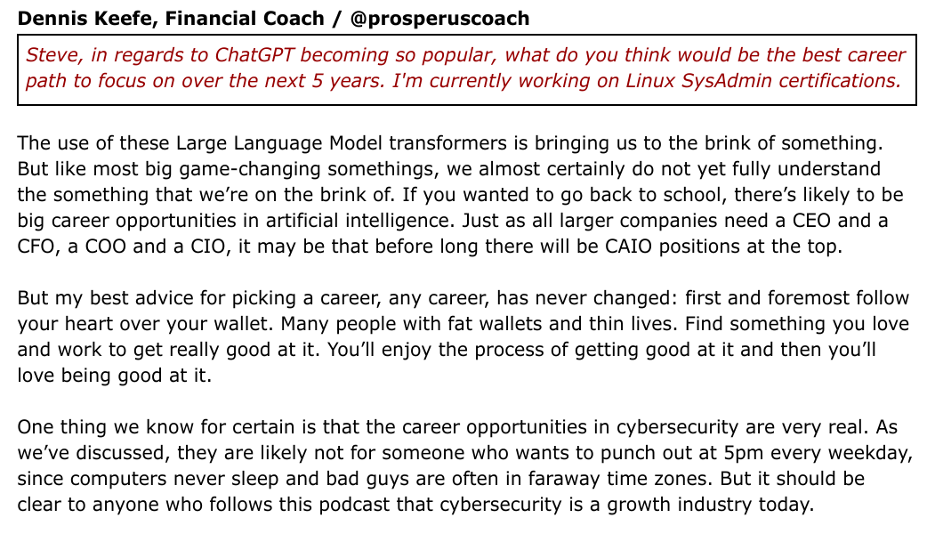 Most valuable career guidance I've come across in a long time was given by Steve Gibson in his latest podcast.