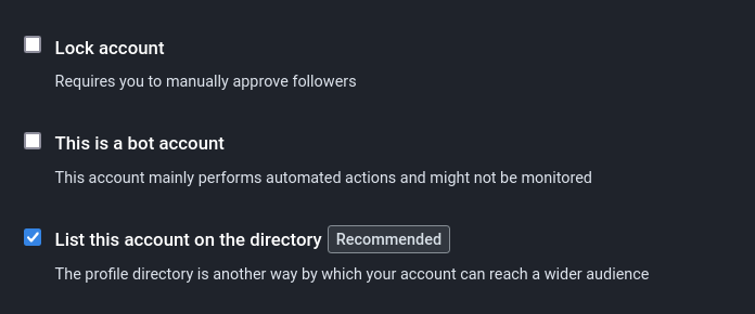 List this account on the directory Recommended