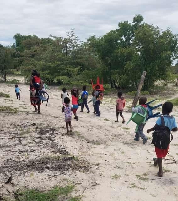STRIVING FOR EDUCATION ... Youngsters from Omakango village in the Ohangwena region in #Namibia take their chairs to kindergarten every morning to be taught under a tree.