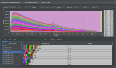 Недавно рассказывал о многомерном анализе данных временных рядов с помощью Dimension-UI , упоминая простой и удобный интерфейс для доступа к данным, гибкость, интерактивность и другие преимущества. Пришло время проверить, как это работает на практике. В качестве полигона для анализа мы используем статистику футбольных матчей: посмотрим данные по голам, детализированные по командам, статистику по счёту, а также сравним результативность в домашних и гостевых матчах.