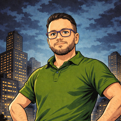 Profile picture: My face in b/w. A smiling forty years old Brazilian-Japanese guy with short black hair and glasses.