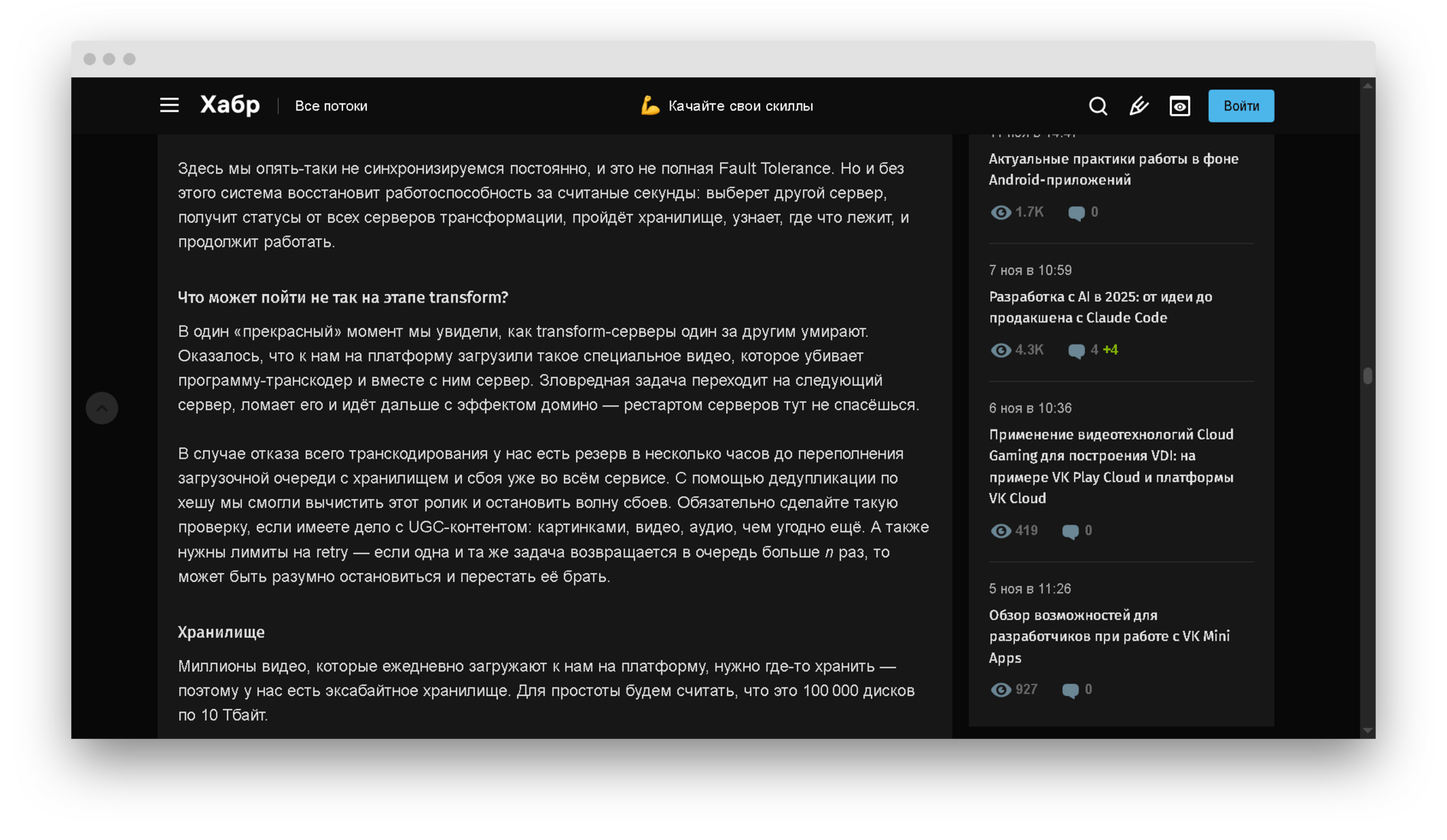 Статья на Хабре о отказоустойчивой архитектуре VK Видео, кешировании, загрузке и доставке контента. (Habr)