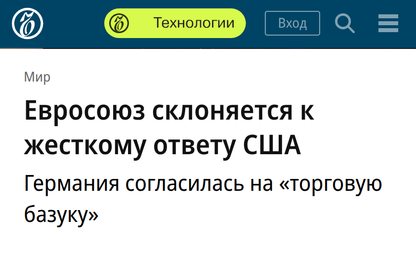 "Евросоюз склоняется к жесткому ответу США".