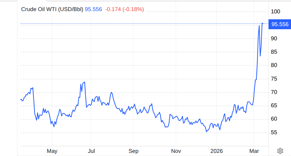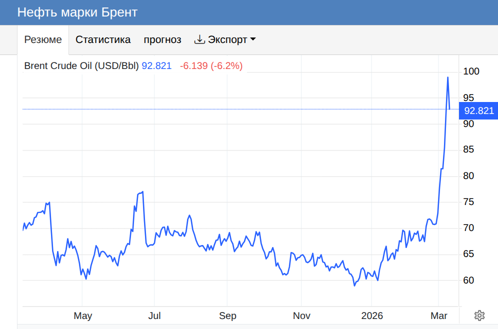 "Фьючерсы на нефть WTI поднялись до около 95 долларов за баррель, в то время как нефть Brent превысила 100 долларов.