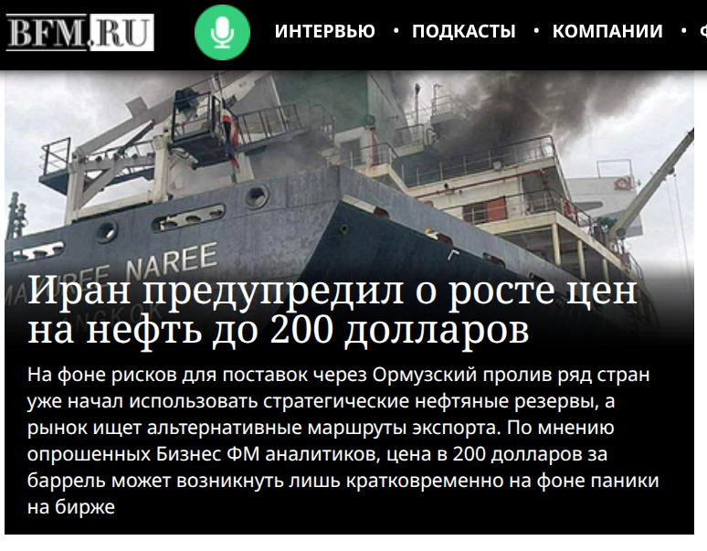 "Иран предупредил о росте цен на нефть до 200 долларов".