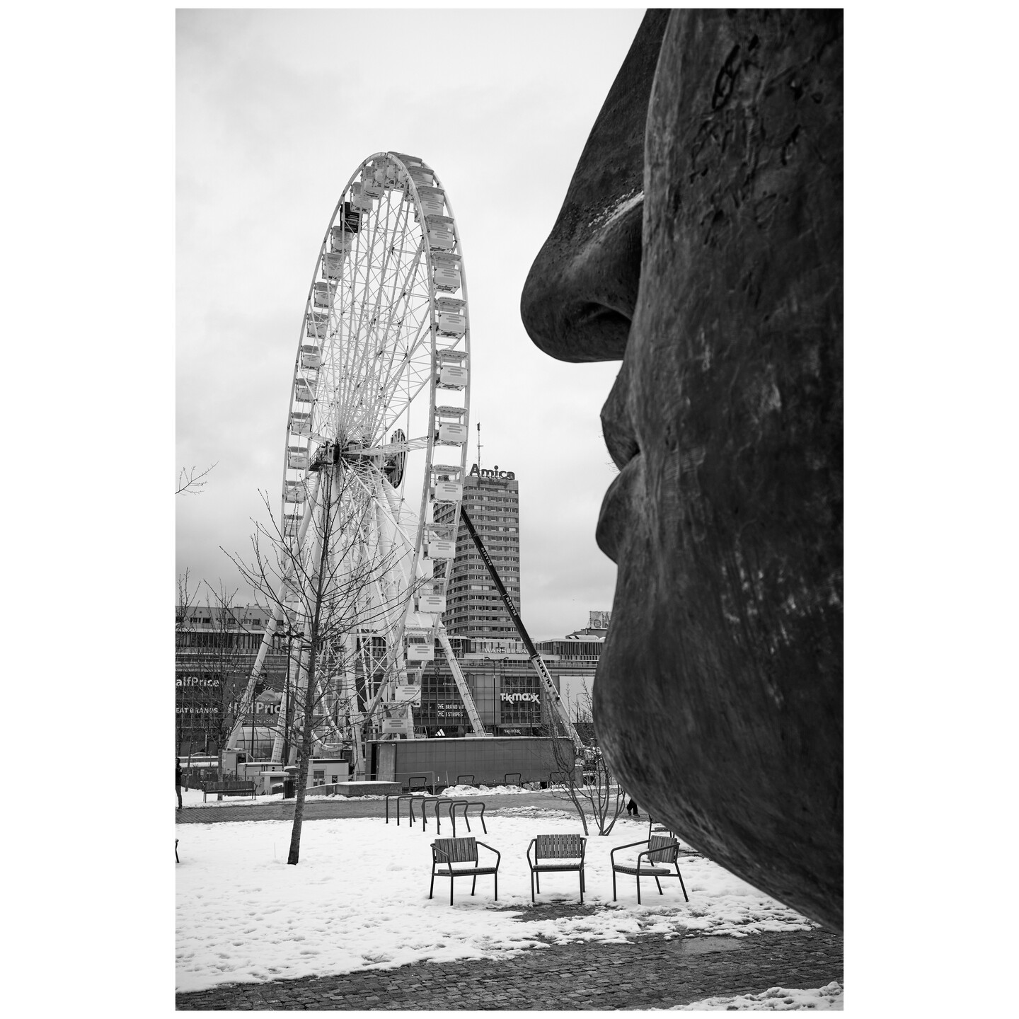 #warszawa #photography #monochrome #bwlover #fotograf #wisnios #sculpture #mitoraj #tindaro #ferriswheel #downtown